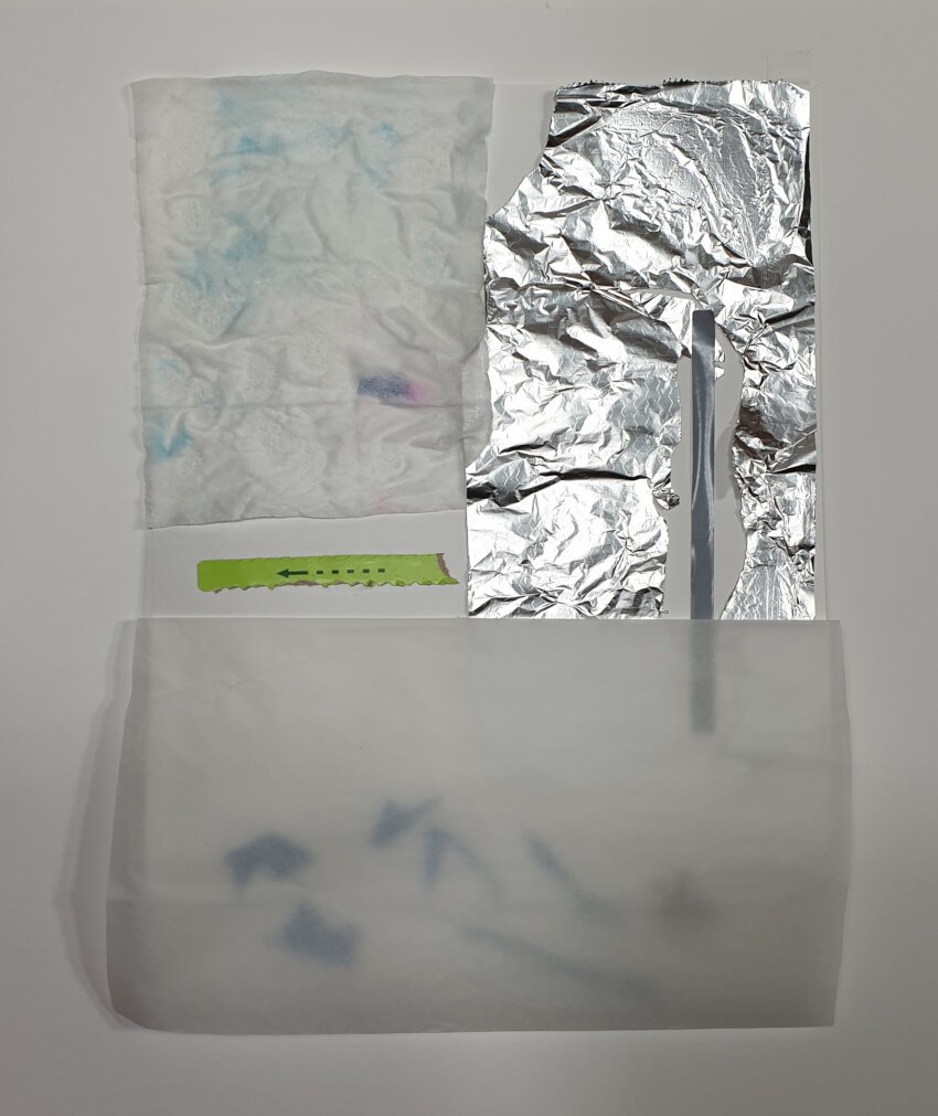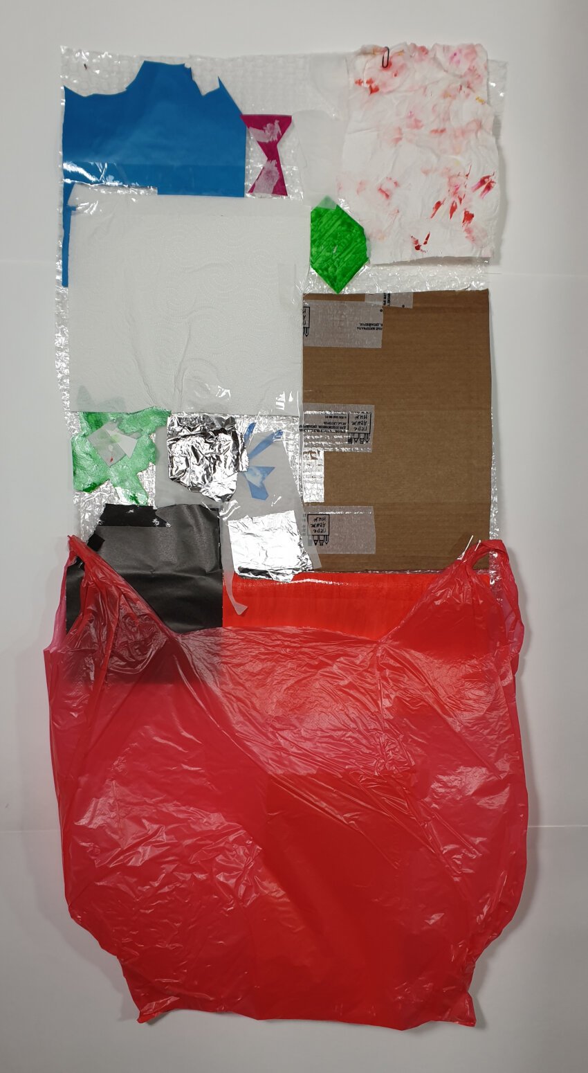 “Surfaces” series refers to Modern art era, 60s-70s. The artworks invite the viewer to see, consider, find new ideals, new beauty in everyday materials, household items, which we can encounter both at home, in the kitchen, and in the trash when we throw out the trash.